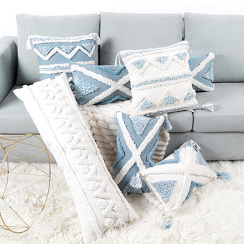 Taie d’oreiller géométrique blanc-bleu à taille longue